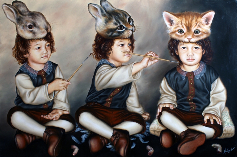 Al principio de manera empírica, va buscando los medios visuales para comunicar diferentes conceptos como la muerte, los miedos o la hipocresía; con un énfasis en la anatomía, sin limitaciones de forma, color o composición, haciendo uso de personajes animales, humanos y objetos para lograrlo. El objetivo principal de su obra es la creación de un collage que al integrarse represente un retrato de un mundo creíble, no del aspecto de las cosas, sino de su esencia, en ocasiones sin las envolturas que lo hacen más digerible.